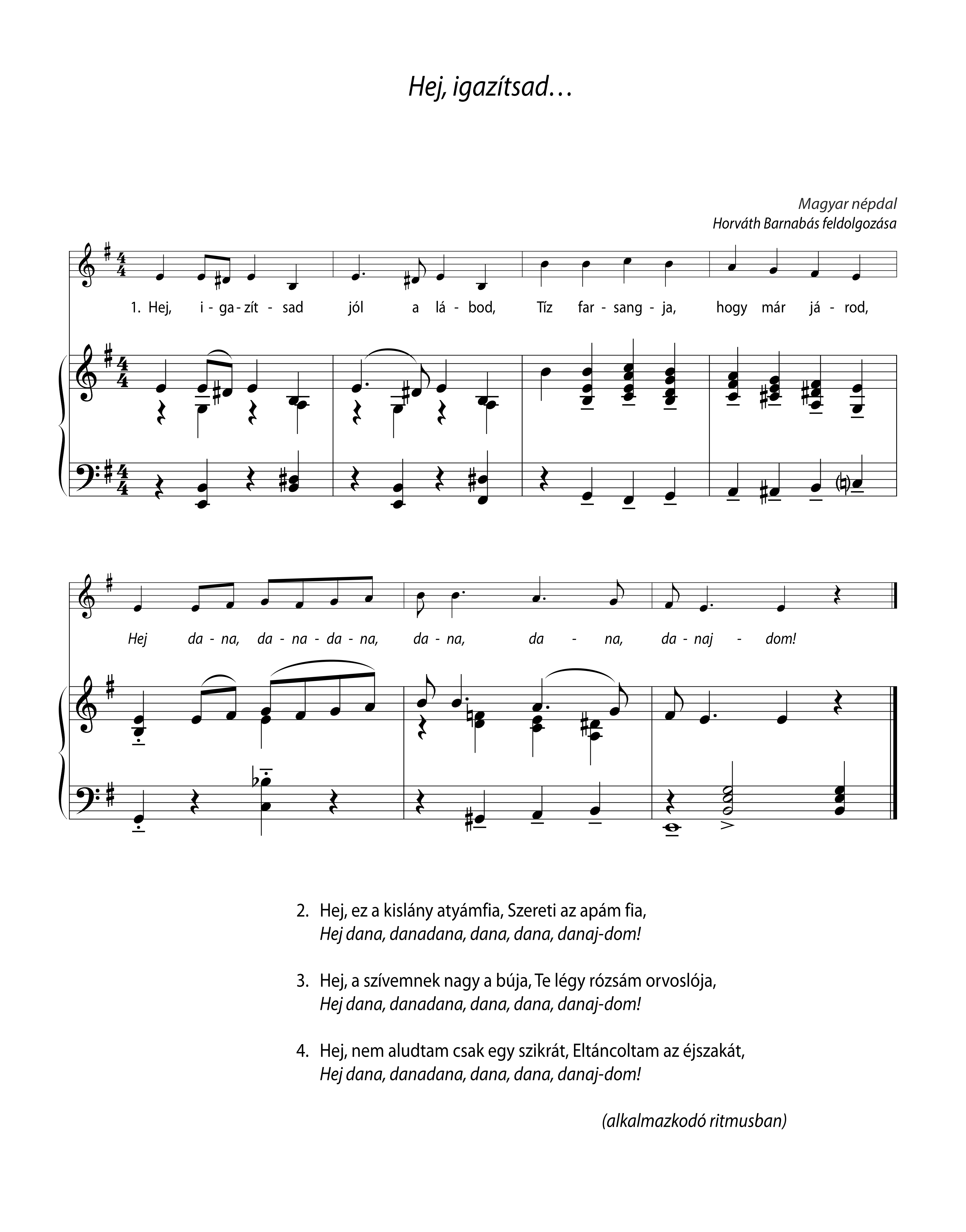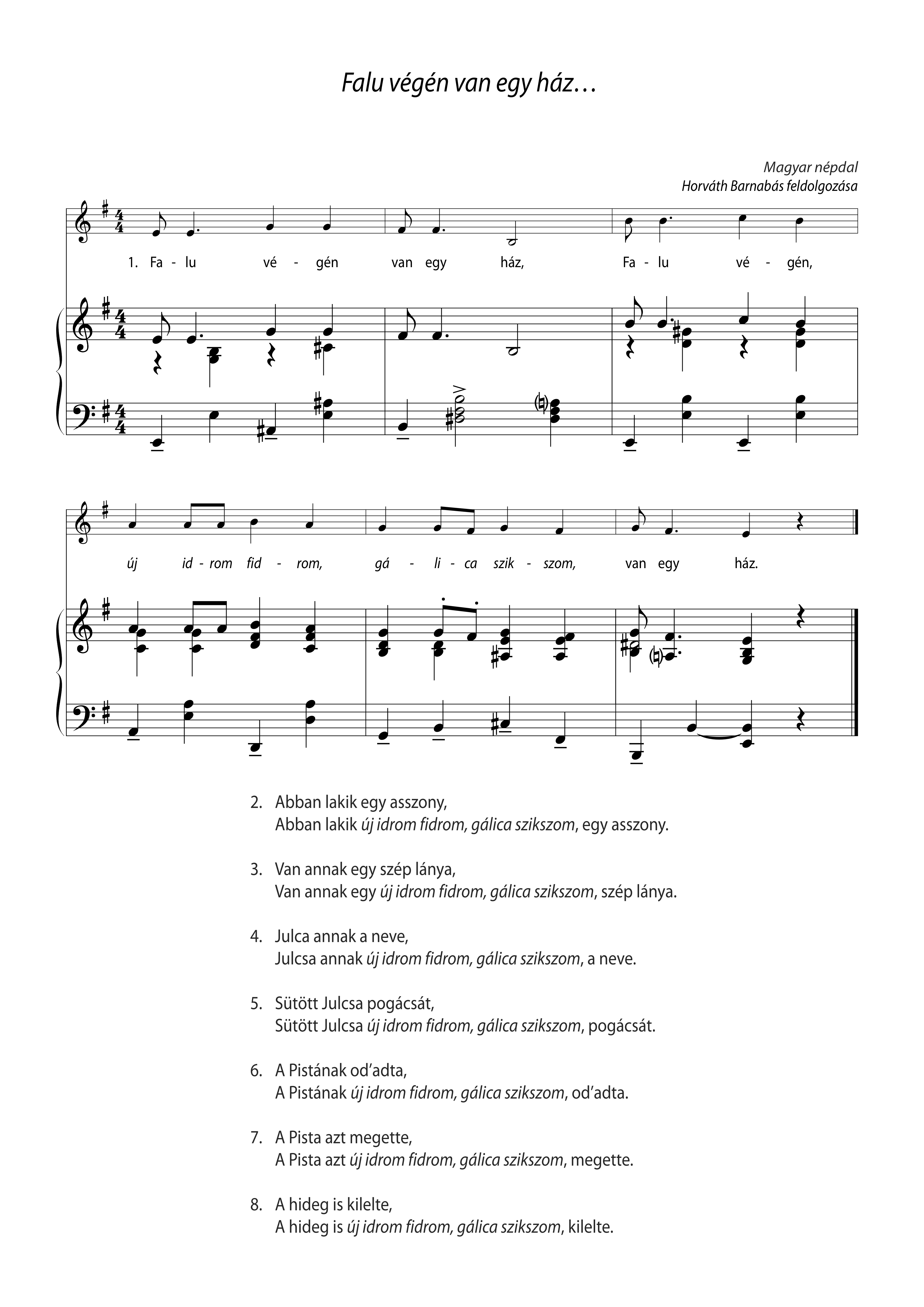 Két gyerek kézfogással házat tart (jobb kezüket kulcsolva magasban háztetőt tartanak, bal kezüket kulcsolva vízszintesen ablakot utánoznak), mögé áll egy asszony, majd a lány, süti a pogácsát. Az ablakon átadja Pistának…
